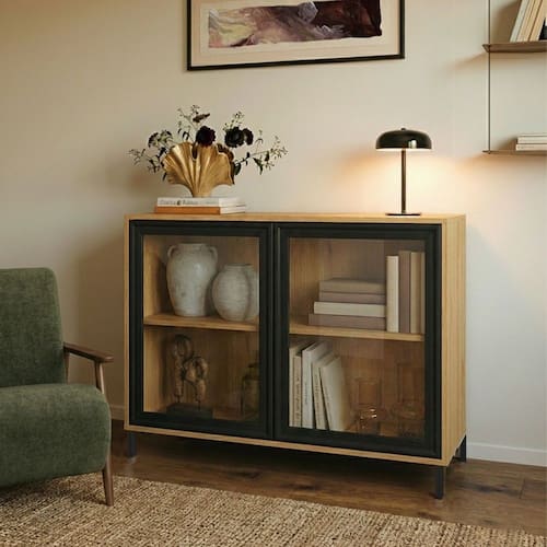 O(a) Aparador Refresh 2 Portas com Vidro Marrom/Preto - Brv é produzido em MDP na escala de brilho Fosco, e possui um grau de dificuldade de montagem: Médio.