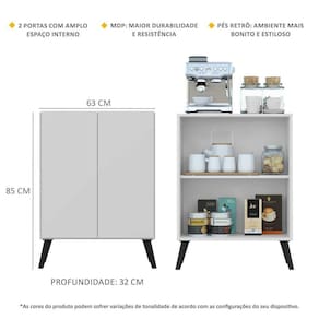 O Aparador Cantinho do Café com Pés Retrô e 2 Portas Multimóveis é produzido em MDP com acabamento acetinado (cerca de 20% de brilho), que garante maior durabilidade, facilidade na limpeza, além de um acabamento superior. Com 2 portas, possui um excelente espaço interno para organizar louças, bebidas e demais objetos (a prateleira interna suporta 8 Kg e o tampo 9 Kg). Os pés retrô, em polipropileno, dão um charme especial ao móvel deixando-o com um visual leve e permitindo você compor um ambiente com ar vintage e moderno ao mesmo tempo. Os amantes de café poderão deixar seu cantinho mais charmoso e prático para curtir os melhores momentos com os amigos e família, saboreando um delicioso cafezinho.