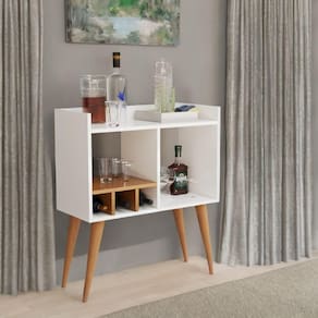 Características Principais:Estrutura em MDF: Alta resistência e longevidade, com acabamento de qualidade superior.Resistente à água: Proteção contra danos cas pela umidade, ideal para ambientes com variação de temperatura e umidade.2 Prateleiras Espaciosas: Oferecem amplo espaço para armazenar copos, taças e outros itens essenciais.Espaço para 3 Garrafas: Organize suas bebidas favoritas de forma prática e segura, mantendo tudo ao seu alcance.Design Moderno e Elegante: Seu visual clean e sofisticado combina com diversos estilos de decoração, agregando charme e funcionalidade ao ambiente.Por que escolher este aparador?Versatilidade: Perfeito para diversas ocasiões, seja para um jantar com amigos ou para criar um cantinho especial de drinks em casa.Praticidade: Com as prateleiras e os espaços dedicados às garrafas, você terá tudo organizado e facilmente acessível.Pintura Durável: A pintura UV não só confere um acabamento bonito, mas também protege o móvel contra danos do dia a dia, como riscos e manchas.