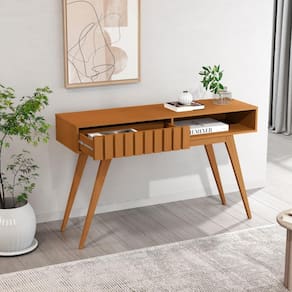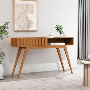 O aparador ripado tem tampo, base e laterais em MDF de 1,5cm, gaveta ripada com corrediças telescópicas, nicho porta objetos, além dos pés e travessas em madeira maciça com exclusividade da linha açaí.