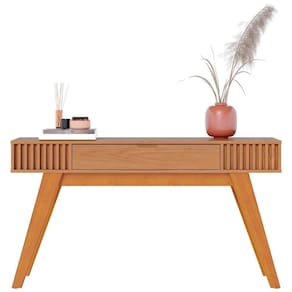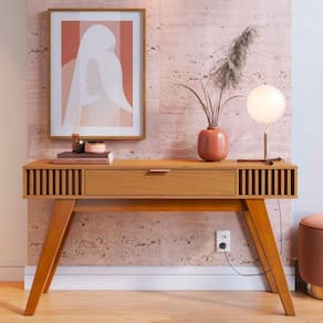 Com pés em madeira maciça e tampo amplo, é perfeito para apoiar decorações, taças, livros ou itens do dia a dia. Versátil, pode ser utilizado em halls, salas de jantar ou como divisor de ambientes.