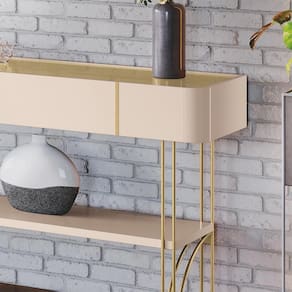 O Aparador Sala de Estar Vivant personifica requinte e sofisticação em peças contemporâneas, destacando-se pela valorização das formas orgânicas e cantos arredondados. Seu design versátil inclui uma prateleira inferior de 25mm, perfeita tanto para complementar a decoração quanto para funcionar como um elegante divisor de ambientes. As laterais apresentam delicados filetes decorativos, adicionando um toque de charme. A estrutura do aparador é sustentada por pés de aço maciço 3/8, proporcionando estabilidade e elegância, com um requintado acabamento em tom dourado. Fabricado em MDP e MDF de 15mm, o Aparador Vivant é mais do que um simples móvel, é uma expressão de estilo e bom gosto para elevar o ambiente da sala de estar a um patamar de elegância contemporânea.