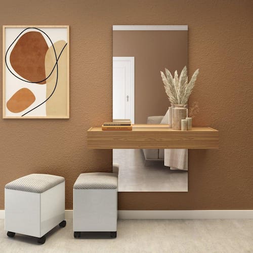 aparador 110cm com uma gaveta, espelhado, gaveta na cor freijó madeirado fosco e borda do espelho na cor off white, acompanha acessórios para fixação na parede, pode ser usado em diversos ambientes, combina com os demais produtos da nossa linha. Acabamento: Pintura UV Acabamento da Gaveta: Pintura UV Altura do Espelho: 69,8 cm Ambiente Principal: Sala de Jantar Complexidade da Montagem: Média: pode ser montado por mais de uma pessoa e/ou necessite de maior conhecimento para montagem Cor: Freijó/Off White Cor do Produto: Freijó/Off White Cor Interna: Freijó Escala de Brilho: Fosco Escala de Brilho da Gaveta: Fosco Espessura do Espelho: 3 mm Fita Integrada: Sim Formato do Espelho: Retangular Gaveta com Chave: Não Itens Inclusos: 1 Aparador, kit ferragens e manual de montagem. Largura do Espelho: 44,8 cm Manual de Montagem e Instalação: https://cdn2.madeiramadeira.com.br/atributo/dalla-costa/958356-tb485.pdf Material da Gaveta: MDF Material Principal: MDF Necessita Montagem: Sim Origem do Produto: Nacional Peso: 29 kg Peso Máximo por Gaveta: 5 kg Possui Adega: Não Possui Bandeja: Não Possui Possui Espelho: Sim Possui Gavetas: 01 Possui Pés: Suspenso Possui Portas: Não Possui Prateleiras: Não Possui Vidro: Não Quantidade de Espelho: 01 Recomendações de Uso, Manutenção e Limpeza: Pano seco Sapatas Niveladoras: Não Sistema de Montagem: mini fix Suporta Até (kg): 10 kg Tamanho: Tipo de Corrediça da Gaveta: Metálica Telescópica Tipo de Fixação do Espelho: Fita Dupla Face Tipo de Puxador da Gaveta: Embutido