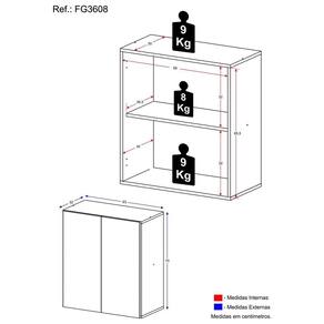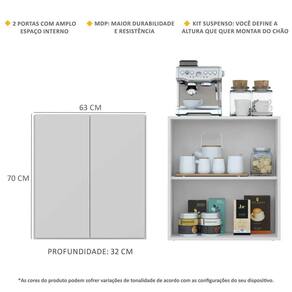 Dimensões do produto montado: Altura: 70cm | Largura: 63cm | Profundidade: 32cm *Você pode consultar as medidas internas na imagem técnica do produto.