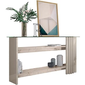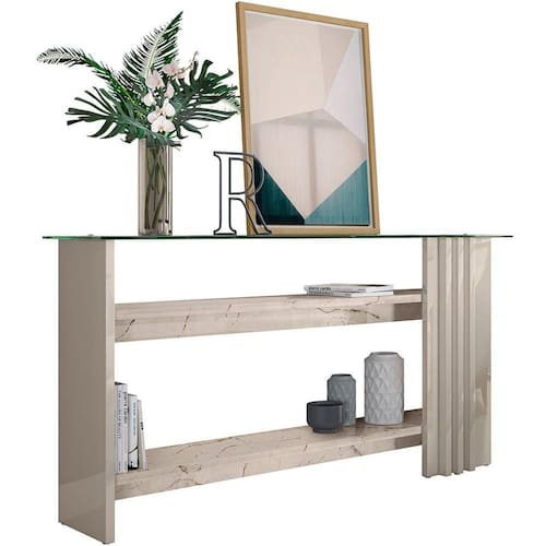 Características do Aparador com Vidro: - Produzida em MDP de alta qualidade de 25 mm; - Acabamento de pintura em padrão UV; - Tampo de Vidro de 8mm; - Sistema de Fixação com Girofix; - Não acompanha objetos de decoração;
