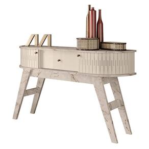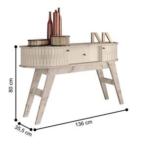 Feito em MDP 15/25mm. Possui 1 prateleira para acomodar objetos decorativos, 2 portas curvas em MDF e 1 gaveta com corrediça telescópicas
