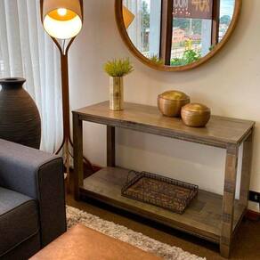 Esse aparador em madeira maciça é feito de madeira 100% renovável e possui acabamento rústico. Além de decorativo, ele ajuda na organização e disposição dos objetos que deseja deixar no hall, e também pode ser utilizado na sala de jantar, sala de estar ou até mesmo no quarto. Acabamento: Verniz Acabamento dos Pés: Verniz Altura dos Pés: 0 cm Ambiente Principal: Sala de Estar Complexidade da Montagem: Baixa: pode ser montado por uma pessoa sozinha Cor: Cinza Cor do Produto: Cinza Cor Interna: Cinza Escala de Brilho: Semi-Brilho Itens Inclusos: 1 Aparador, Kit Ferragens e Manual de Montagem Linha ou Coleção: Robusto Manual de Montagem e Instalação: https://cdn2.madeiramadeira.com.br/atributo/artefama/1142205-robusto.pdf Material dos Pés: Madeira Maciça Material Principal: Madeira Maciça Necessita Montagem: Sim Origem do Produto: Nacional Pés Reguláveis: Não Peso: 19,8 kg Possui Adega: Não Possui Bandeja: Não Possui Possui Espelho: Não Possui Gavetas: Não Possui Pés: 04 Possui Portas: Não Possui Prateleiras: Não Possui Rodízio: Não Possui Vidro: Não Recomendações de Uso, Manutenção e Limpeza: Evitar expor a luz do sol e umidade, Limpar com flanela umedecida, Não utilizar álcool ou detergente Sapatas Niveladoras: Não Sistema de Montagem: Parafusos Suporta Até (kg): 25 kg Tipo de Madeira Maciça: Pinus Tipo de Madeira Maciça dos Pés: Pinus Ean: 7909903225455