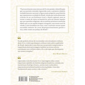 A nova edição da obra mais completa sobre a história da padroeira do Brasil tem texto de apresentação de Laurentino Gomes.           Fruto de um minucioso trabalho de pesquisa histórica, jornalística e arquivística, no Brasil e no exterior, Aparecida é uma jornada fascinante pelos mistérios, curiosidades e segredos que envolvem a trajetória deste símbolo verdadeiramente nacional, desde o descobrimento da imagem nas águas do rio Paraíba do Sul, em 1717, até sua bênção pelo Papa Francisco em 2013.    Um fenômeno popular, alvo de devoção e peregrinações constantes, a imagem de Nossa Senhora Aparecida também foi usada politicamente e vítima de um atentado que a destruiu em 1978, cujos desdobramentos têm reviravoltas dignas de um roteiro de cinema. Valendo-se de imagens e documentos históricos, relatos de peregrinos e entrevistas com especialistas, Rodrigo Alvarez, com vasta experiência e habilidade jornalística, reconstrói os episódios mais importantes na narrativa da imagem da santa que conquistou o coração do Brasil e ajudou a forjar uma identidade nacional.         “É provavelmente essa mistura de fé com paixão e identificação que nos permite entender Aparecida como o primeiro símbolo verdadeiramente nacional, a figura mais antiga de nossa história que representou a unidade do Brasil. Ainda que tenha demorado até que ela deixasse de ser um fenômeno local, e depois regional, para se tornar a santa de todos os brasileiros, pois até mesmo aqueles que, por questões religiosas, não se sentem próximos à santinha sabem que, ao ver aquela imagem triangular, com manto azul de veludo e seus bordados em ouro, com o rostinho escuro quase escondido embaixo da coroa desproporcionalmente grande e rica, estão vendo um pedaço do Brasil.”    “Eu não poderia deixar de recomendar com entusiasmo a leitura deste livro a todos que desejam conhecer mais sobre a padroeira do Brasil. Aparecida é uma obra que nos permite compreender a importância desta personagem também em nossa cultura, convidando-nos a refletir sobre a fé e a devoção que ela desperta nos nossos corações.” — Ana Maria Braga    “[Aparecida é um] fascinante livro-reportagem sobre o mais importante episódio da história religiosa brasileira, contada com maestria por Rodrigo Alvarez, um dos mais conhecidos e experientes jornalistas brasileiros da atualidade. Uma obra fundamental, para crentes e não crentes.” — Laurentino Gomes
