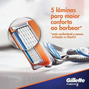 Aparelho de Barbear Gillette Fusion 5 Tradicional Para um barbear mais confortável e com menor irritação a Gillette apresenta a a linha Fusion que possui 5 lâminas para um barbear de detalhe. O Aparelho Gillette Fusion 5 Tradicional, é a versão básica da família Fusion. O Aparelho de Barbear Gillette Fusion 5 possui, ainda, lâmina de precisão, que é perfeita para lugares de difícil acesso como as costeletas e sob o nariz com uma faixa de lubrificação que fica branca indicando quando o barbear não é mais ideal. 5 lâminas para um barbear mais confortável Melhoria na faixa de lubrificação com aloe, vitamina Ação de pivotamento aprimorada Revestimento de faca aprimorado Capa mais avançada Barbear mais confortável e com menos irritação Vc. Mach3 Microtensores flexíveis Folha de precisão Ean: 7500435132008