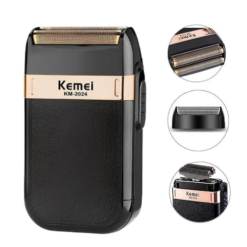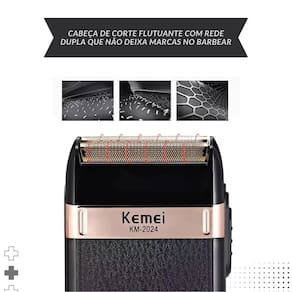 Aparelho de Barbear Kemei KM2024 - Profissional e Elétrico Conheça o incrível barbeador Kemei Km-2024 e desfrute de um produto desenvolvido para profissionais. Com ele você consegue resultados mais rápidos e precisos além do conforto no manuseio. Se você sente incômodo ao se barbear com Gillete ou Navalha o Kemei KM-2024, é o barbeador elétrico perfeito, pois corta os pelos diretamente na raiz deixando a pele lisa, sem causar irritação ou cortes, e também pode ser para depilar partes do corpo e cabeça. Além de você poder levar para qualquer lugar por ser pequeno, também possui uma entrada USB, para facilitar o carregamento. Sua incrível bateria de lítio faz com que carregue por completo em 8 horas e tenha uma autonomia de aproximadamente 60 minutos de uso contínuo. Especificações Técnicas Marca: Kemei Modelo: KM-2024 LED de carregamento luz lembrete Lâmina de aço de carbono Tempo de Recarga: 8 Horas Tempo de Uso: 60 Minutos Potência Motor: 3W Tensão: 110/220v Tipo: Bateria Recarregável Itens Inclusos 1 Barbeador KM-2024 1 Cabo USB 1 Escovinha de Limpeza 1 Bolsa 1 Tampa Protetiva para o Barbeador ================================ Dúvidas Frequentes - É Bivolt e Sem Fio Sim Suporta 110 e 220 volts, e também pode ser Utilizado sem fio. Mas se quiser utilizar carregando também é possível. - O produto é resistente Trabalhamos apenas com produtos com material de altíssima qualidade, durabilidade e procedência. - Serve para barbas grandes O recomendado é que utilize o aparelho somente em pelos menores, ou para finalizar o formato que deseja, mas nunca aparar barbas maiores. Marca: Não Informado