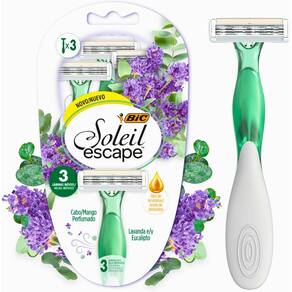 Descrição do produto : " O Barbeador Descartável BIC Soleil Escape foi desenvolvido especialmente para oferecer uma depilação confortável, rente e suave. Com 3 lâminas de alta qualidade, ele garante um corte preciso em cada uso, deslizando facilmente sobre os contornos do corpo feminino para um acabamento perfeito e uniforme. A cabeça móvel facilita o deslizar em áreas mais difíceis, proporcionando uma experiência segura e prática. Equipado com uma dupla fita lubrificante, o barbeador protege a pele contra irritações, permitindo uma depilação suave e confortável. Seu cabo ergonômico foi projetado especialmente para as mãos femininas, proporcionando firmeza e controle durante o uso. Este blister contém 12 unidades, ideal para quem busca qualidade e conveniência em cada depilação.\nPrincipais Benefícios: Depilação Precisa: 3 lâminas de alta qualidade para um corte rente e suave. Cabeça Móvel: Acompanha os contornos do corpo, ideal para áreas delicadas. Dupla Fita Lubrificante: Proporciona deslize suave e protege a pele contra irritações. Cabo Ergonômico: Design confortável e seguro, desenvolvido especialmente para as mãos femininas. Blister Econômico: Pacote com 12 unidades, garantindo uso prolongado e economia. : "