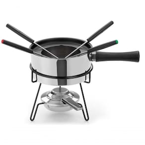 O brilho do inox em contraste com o os tons de preto, trazendo requinte ao seu fondue. O bem servir começa com toques refinados e alta qualidade.