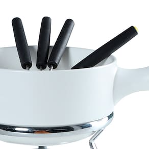 Aparelho de Fondue Fracalanza: sabor e sofisticação em cada detalhe Perfeito para momentos especiais, o Aparelho de Fondue Fracalanza em Cerâmica combina elegância e funcionalidade. Com uma panela de cerâmica branca que distribui o calor de maneira uniforme, suporte de aço inox para estabilidade e garfos com cabos que não aquecem, ele é ideal para preparar fondues de queijo, chocolate e muito mais. O design clássico e refinado harmoniza com qualquer decoração, tornando suas reuniões ainda mais aconchegantes e sofisticadas.