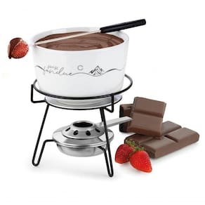 de fondue para até quatro pessoas, o Swiss traz cumbuca em porcelana apoiada em um delicado tripé na cor preta. Remetendo aos antigos aparelhos, traz à memória as mais belas lembranças.