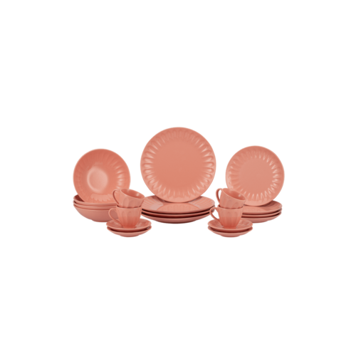 O Aparelho de Jantar, na cor Coral, da Linha Decorato/Haus Concept, é composto por 4 pratos rasos de 27,3 cm de diâmetro, 4 pratos fundos de 20,8 cm de diâmetro, 4 pratos de sobremesa de 21,5 cm de diâmetro, 4 xícaras de chá de 8,1 cm de diâmetro e 4 pires de chá 14,3 cm de diâmetro.
