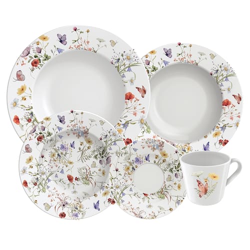 As peças desse conjunto possuem uma charmosa e diversificada estampa floral, rica em detalhes, com cores vividas e um design delicado, meigo e doce que desperta a sensação de bem-estar vivenciados nas refeições em família. Essa estética foi especialmente desenvolvida para que as peças complementem a decoração de forma delicada e suave, garantindo que suas receitas sejam o verdadeiro destaque da mesa! Ideal para servir seus convidados desde ocasiões especiais, até almoços e jantares informais, o Conjunto Ana Clara possui pratos rasos e fundos para aperitivos e refeições principais, além de pratos para sobremesa, xícaras e pires, garantindo que você sirva um banquete completo, da entrada até o cafezinho, para que suas visitas sejam recepcionadas com requinte do início ao fim. Além disso, a linha é fabricada em Porcelana translúcida de alta tecnologia e qualidade superior. Esse material garante excelente brancura, um brilho inigualável, ótima resistência mecânica e porosidade próxima de zero, que evita a proliferação de fungos e bactérias, proporcionando durabilidade e performance para sua mesa posta.
