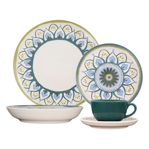 IInspirada no frescor e na leveza do estilo mediterrâneo, a coleção Flat Nisa convida a transformar pequenos momentos à mesa em experiências encantadoras. Os tons de azul claro, verde oliva e amarelo suave remetem aos limoeiros em flor, às folhas de oliveira e ao céu luminoso das vilas costeiras. O nome Nisa faz referência à cidade portuguesa conhecida por seu artesanato tradicional, em especial, a cerâmica artesanal e os padrões florais que remetem a mandalas e mosaicos feitos à mão. Essa influência está presente em cada detalhe da decoração, que celebra a harmonia entre formas, cores e raízes culturais.
