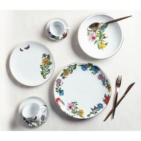 Aparelho de Jantar 30 Peças Hippie Chic SchmidtApaixone-se pela decoração Hippie Chic, que enche seus olhos de flores multicoloridas, filetes dourados em ouro 18 quilates e pequenos bichinhos fofos, como borboletas e joaninhas. Uma viagem à atmosfera vintage dos anos 70, que não deixa dúvidas de que pode ser uma bela aquisição para a sua casa!