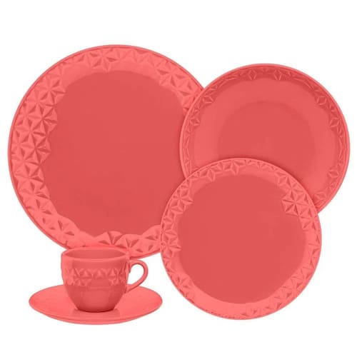 As cores da coleção Salada Tropical são vibrantes e inspiradas nos elementos que mais representam as raízes do Brasil. O shape Mia possui triângulos em alto relevo em uma base clássica, o que torna essa coleção um encontro entre o sofisticado e o moderno. Agora, os pratos Mia estão de cara nova, a decoração Amora foi inspirada na fruta brasileira que possui variações de cor entre o preto, rosa e vermelho, tons vibrantes que fizeram o mix da fruta se tornar popularmente conhecido como frutas vermelhas. A decoração em tom de vermelho vivo é alegre e cheia de personalidade.