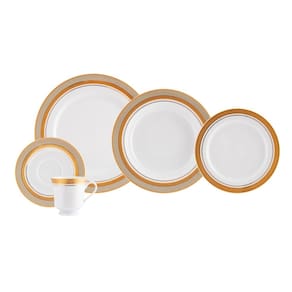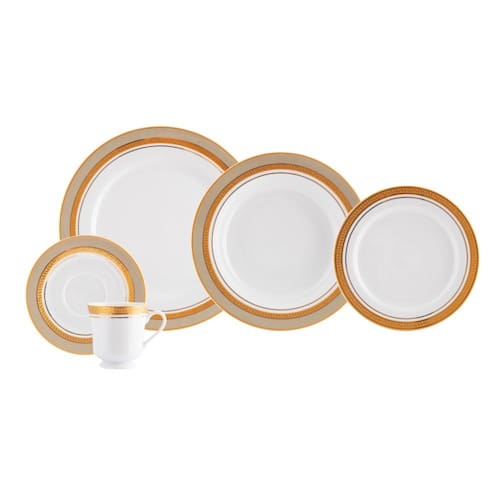 Cor: Branco e bege com filete em tinta ouro