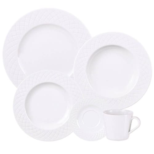 Conteúdo: 6 xícaras 185ml; 6 pires; 6 pratos fundos 23cm; 6 pratos rasos 27cm; 6 pratos sobremesa 21cm.