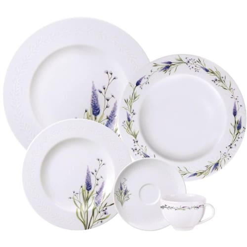 Aparelho de Jantar 4 pessoas 20 Peças Porcelana Tramontina Lilla Decorada Mesa Posta