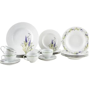 Aparelho de Jantar 4 pessoas 20 Peças Porcelana Tramontina Lilla Decorada Mesa Posta.