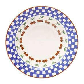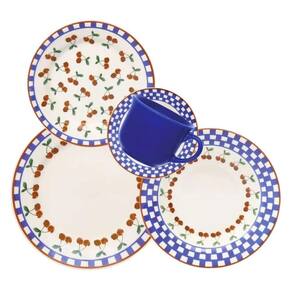 Assim como na moda, as estampas de frutas com pegada vintage também tem seu lugar no setor da mesa posta. O aparelho de jantar Donna Jardim de Cerejas destaca a pequena fruta de vermelho vibrante junto da estampa xadrez de azul e branco, formando um verdadeiro o picnic dentro de casa. O aparelho de jantar 20 peças serve uma mesa completa para 4 pessoas.