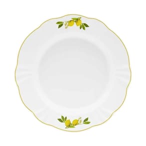 Descrição a história da porcelana está profundamente conectada à itália. Foi na china durante a dinastia tang que se tem registro da criação da primeira peça em porcelana. Porém, foi somente na itália que o material se popularizou e ganhou nome. O limão siciliano é um tema comum nas cerâmicas e também na culinária italianas e na decoração limoni é a estrela principal que resgata um pedaço história da porcelana. Conteúdo da embalagem 6 prato raso 29cm, 6 prato sobremesa 23cm, 6 prato fundo 24cm, 6 pires 17cm, 6 xicaras grandes 200ml especificações uso resistente a micro-ondas, resistente a lava-louças conjunto ou avulso conjunto linha/decoração soleil limoni material porcelana tipo da embalagem papelão pardo formato redondo, relevo decoração estampado cor amarelo, branco, verde garantia 90 dias defeitos de fabricação