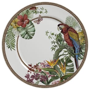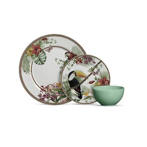 Aparelho de jantar com 12pcs tropicos com bowl verde agua Aparelho de jantar com 12 peças Pode ser em forno de microondas e lava louças Contém: 4 pratos raso largura 28,5 x 28,5 comprimento por 2,2 altura 4 pratos sobremesa largura 19,5 x 19,5 comprimento por 1,8 altura 4 bowls largura 12 x 12 comprimento por 6 altura Material: cerâmica de alta resistência Decorado com equipamento de última geração em impressão digital sobre a base branca Marca: Não Informado
