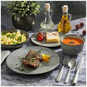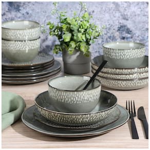 O QUE ESTÁ NA CAIXA: Serviço para 4 pessoas que inclui 4 de cada um dos seguintes: Pratos de Jantar de 25 centímetros, Pratos de Sobremesa de 20 centímetros, Tigelas de Cereais de 740 mL, Tigelas de Jantar de 916 mL INSTRUÇÕES DE CUIDADOS : lindos pratos que também podem ser lavados na lava louças e no micro ondas Grés, vidrado reativo : reativo refere se a uma técnica em que dentro do esmalte reagem juntas para criar uma qualidade onírica e vibrante para as cores e matizes. Como resultado da natureza reativa do esmalte, cada peça de grés é única. A alta temperatura de queima, construção espessa e mistura de argilas totalmente naturais tornam o grés um material incrivelmente durável. DESIGN ARTIFICIAL : uma forma redonda suave com um tom verde perfeito fará com que você ame esta louça em sua mesa. A tigela dupla cria um nível adicional de conveniência para todas as refeições desejadas. Quer esteja a saborear uma massa ou uma sopa, vai apaixonar se especificamente pela utilização versátil da tigela de jantar. SOBRE A MARCA: A Gibson é uma produtora líder do setor de produtos de mesa e utilidades domésticas com sede em Los Angeles, Califórnia. Propriedade familiar há mais de 40 anos, desenvolvemos uma família de marcas que prosperam com o compromisso incansável com estilo, inovação e valor para nossos consumidores em todo o mundo Marca: Não Informado