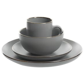 O QUE ESTÁ NA CAIXA: Serviço para 4, que inclui 4 de cada um dos seguintes: Serviço para 4, que inclui 4 de cada um dos seguintes: Pratos para jantar de 25 centímetros, Pratos para sobremesas de 20 centímetros, Tigelas 768 mL e canecas de 350 mL INSTRUÇÕES DE CUIDADO: belos pratos pretos que também são s para microondas e lava louças GLAZE DE PEDRA , MATTE: um acabamento liso e plano, mergulhado em uma cor sólida bonita, cria uma adição elegante e artística à mesa. A alta temperatura de queima, a construção espessa e a mistura de argilas totalmente naturais fazem dos grés um material incrivelmente durável. PROJETO ESTILIZADO: uma simplicidade moderna com um acabamento em ouro falso ao longo da borda traz estilo a todas as cozinhas. Essas placas farão uma declaração. As bordas em forma de cupê permitem um benefício empilhável e economizador de espaço. SOBRE A MARCA: Gibson é um produtor líder do setor de produtos de mesa e utensílios domésticos com sede em Los Angeles, Califórnia. De propriedade familiar há mais de 40 anos, desenvolvemos uma família de marcas que prosperam um compromisso incansável com estilo, inovação e valor para nossos consumidores em todo o mundo GIBSON HOME: feito para a vida cotidiana, o Gibson Home oferece itens essenciais de mesa e cozinha, com moda e função, com o melhor valor Marca: Não Informado