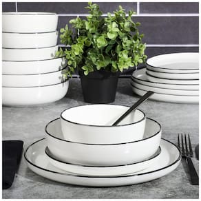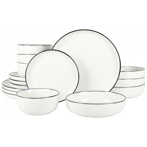 O conjunto de louça Gibson Home Oslo de 16 peças é o equilíbrio perfeito entre elegância moderna e praticidade. Vindo em um conjunto de louça de 16 peças, você terá todas as suas necessidades de mesa com 4 pratos de jantar, pratos de salada, tigelas de jantar e tigelas de cereais. O material de porcelana de grau AB torna este conjunto durável e prático para qualquer evento, desde o café da manhã até o jantar. A bela forma e o design labial adicionam um toque extra de beleza que fará você se apaixonar por esta louça. Aproveite o conjunto de pratos de 16 peças Gibson Home Oslo. O QUE ESTÁ NA CAIXA Serviço para 4 pessoas que inclui 4 de cada um dos seguintes pratos de jantar de 25 centímetros, pratos de sobremesa de 20 centímetros, tigelas de jantar de 17 centímetros e 6 tigelas de cereais INSTRUÇÕES DE CUIDADOS belos pratos brancos e tigelas que também são laváveis e micro ondas AB GRADE PORCELAIN um material durável, leve, livre de BPA e resistente ao calor feito de 100 minerais naturais, apresentando um lindo padrão floral em relevo. Essas qualidades permitem um uso diário versátil DESIGN CONTEMPORÂNEO uma porcelana pérola clássica combinada com um lábio preto contemporâneo para criar um conjunto elegante e esteticamente agradável FAMILY OWNED Gibson é um produtor líder da indústria de produtos de mesa e utilidades domésticas com sede em Los Angeles, Califórnia. Propriedade familiar há mais de 40 anos, desenvolvemos uma família de marcas que prosperam com o compromisso incansável com estilo, inovação e valor para nossos consumidores em todo o mundo Marca: Não Informado