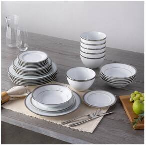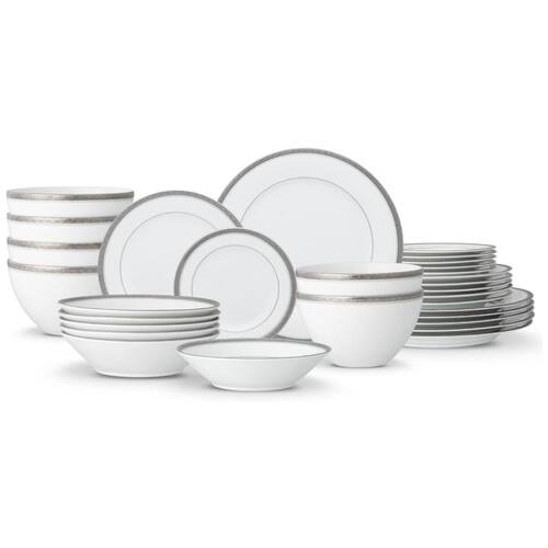 Cor Branco Número de peças 30 Fabricante Noritake Código UPC 037725615158 Nome da Coleção: All Material: Porcelana Instruções de Cuidado do Produto: Lavável na máquina Material Livre de BPA: Sim Formato: Redondo Apropriado para Lavagem em Máquina de Lavar Louça: Sim Ocasião: Todas as ocasiões Marca: Não Informado
