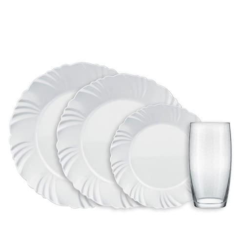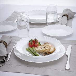 Descubra a Elegância em Cada Detalhe com o Aparelho de Jantar Duralex Nadir Pétala com Copos Favo 16 Peças!Transforme suas refeições em verdadeiros banquetes visuais com o Aparelho de Jantar Duralex Nadir Pétala com Copos Favo 16 Peças. Se você busca uma combinação de visual leve e elegante para sua mesa posta, este conjunto é a escolha perfeita. Com pratos fundos, pratos rasos, pratos para sobremesas e copos Favo, este aparelho de jantar traz consigo uma mistura irresistível de sofisticação e praticidade.Os pratos fundos, pratos rasos e pratos para sobremesas são cuidadosamente desenhados em um formato redondo, com bordas em relevo que lembram as delicadas pétalas de flores. Esta atenção aos detalhes confere ao conjunto uma estética única, capaz de elevar a experiência à mesa.Fabricados em vidro opaline branco temperado, os pratos são resistentes e duráveis. Além disso, apresentam baixa porosidade, garantindo uma superfície higiênica e facilitando a limpeza. Com o Aparelho de Jantar Duralex Nadir Pétala, você não apenas investe em estilo, mas também em qualidade e durabilidade. Os copos Favo que acompanham o conjunto são ideais para ser vir diversas bebidas. Com uma generosa capacidade de 430ml, eles são perfeitos para sucos, refrigerantes, água e outras opções de sua preferência. Seu design moderno e elegante complementa perfeitamente os pratos, acrescentando um toque de estilo à sua mesa. Todas as peças podem ser utilizadas com segurança no micro-ondas, na geladeira e na lava-louças, proporcionando praticidade e facilitando o seu dia a dia.Não espere mais para elevar a experiência à mesa. Adquira agora mesmo o Aparelho de Jantar Duralex Nadir Pé tala com 16 peças e desfrute de refeições com estilo, sofisticação e qualidade. Transforme cada momento à mesa em uma celebração vis ual, onde a elegância se encontra com a praticidade, proporcionando uma experiência única e inesquecível. Invista na beleza e durabilidade que o Aparelho de Jantar Nadir Pétala oferece e faça de cada refeição um verdadeiro espetáculo.Monte uma Mesa Post a Sofisticada no Dia a Dia com o Aparelho de Jantar Duralex Nadir PétalaMontar uma mesa posta não precisa ser reservado apenas para ocasiões especiais. Com o Aparelho de Jantar Duralex Nadir Pétala, é possível transformar o simples ato de se sentar par a as refeições do dia a dia em um momento especial e elegante. Aqui estão algumas dicas para criar uma mesa posta encantadora com praticidade e estilo:1. Escolha a Toalha de Mesa: Opte por uma toalha de mesa que complemente as cores e o design do Aparelho de Jantar Duralex Nadir Pétala. Cores neutras são sempre uma escolha segura, mas você também pode ousar com padrões suaves par a adicionar um toque de personalidade.2. Posicione os Pratos de Forma Estratégica: Disponha os pratos de maneira organizada e harmônica. Coloque os pratos fundos, rasos e para sobremesas em seus devidos lugares. Lembre-se da elegância das bordas gravadas em relevo, que adicionam um toque refinado à composição da mesa.3. Adicione Guardanapos Elegantes: Escolha guardanapos que complementem o esquema de cores da mesa. Dobre-os de maneira elegante ou use anéis de guardanapo para adicionar um toque extra de sofisticação.4. Decore com Detalhes Charmosos: Acrescente pequenos detalhes decorativos, como velas, flores ou centros de mesa simples. Esses elementos adicionam um toque de charme sem sobrecarregar a mesa.5. Aproveite a Versatilidade do Aparelho de Jantar: Explore as diferentes combinações de pratos e copos ao longo da semana para manter a mesa posta sempre interessante. A versatilidade do Aparelho de Jantar Duralex Nadir Pétala permite criar diferentes visualizações sem abrir mão da elegância.Ao seguir essas dicas, você transformará suas refeições diárias em momentos especiais, aproveitando ao máximo a beleza e a qualidade do Aparelho de Jantar Duralex Nadir Pétala. Cada detalhe contribuirá para uma experiência única à mesa, combinando praticidade e elegância de maneira perfeita.