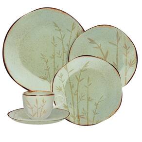 descrição: uma coleção que traz muitos elementos da cultura do japão. O formato orgânico das peças é inspirado na filosofia japonesa que busca a beleza na imperfeição. Já a decoração tem o bambu em destaque, um elemento sempre presente na história e cultura do país. A estética vintage da peça é alcançada através de uma técnica manual de decoração com esmalte reagente. Contém: 6 pratos rasos 27,5cm 6 pratos fundos 21cm 6 pratos de sobremesa 21,5cm 6 xícaras de chá 200ml 6 pires de chá 16cm