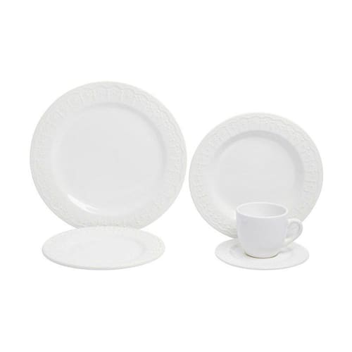 O aparelho de jantar Adele possui 20 peças, servindo até 5 pessoas. As peças são produzidas em cerâmica. São peças mais rebuscadas com arabescos em volta da borda, que proporciona um tom romântico.