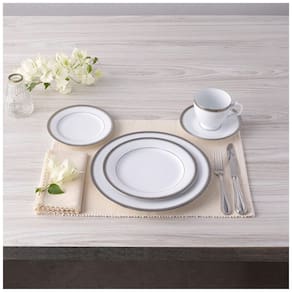 Inclui: 1 prato de jantar, 1 prato de salada, 1 prato de café da manha, 1 xícara e 1 pires.