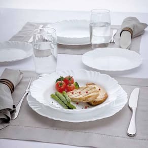 Mesa completa e elegante não poderá faltar o aparelho de 16 peças Duralex Opaline Pétala.