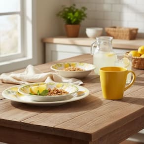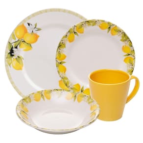 Composição:06un Pratos Rasos com 27,5cm diametro.06un Prato Fundo com 21cm diametro e 3,5cm altura06un Prato Sobremesa com 20cm diâmetro06un Caneca com 280ml cada.A linha Limão Siciliano, chega trazendo o clima do verão, vibrante, alegre e com aquele toque artesanal que encanta à primeira vista. Produzido em cerâmica branca de alta resistência, com processo de decoração digital, sobre a base branca, é um produto não refratário, de uso seguro pois não libera substâncias tóxicas.