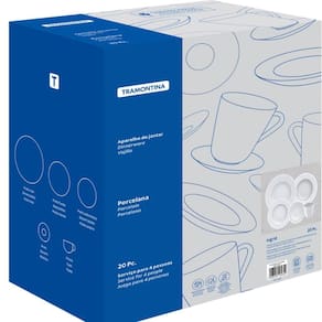 Aparelho de Jantar Tramontina Ingrid 20 Peças Porcelana Decorada Branco.