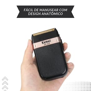 Conheça o incrível barbeador Kemei Km-2024 e desfrute de um produto desenvolvido para profissionais. Com ele você consegue resultados mais rápidos e precisos além do conforto no manuseio. Se você sente incômodo ao se barbear com Gillete ou Navalha o Kemei KM-2024, é o barbeador elétrico perfeito, pois corta os pelos diretamente na raiz deixando a pele lisa, sem causar irritação ou cortes, e também pode ser para depilar partes do corpo e cabeça. Além de você poder levar para qualquer lugar por ser pequeno, também possui uma entrada USB, para facilitar o carregamento. Sua incrível bateria de lítio faz com que carregue por completo em 8 horas e tenha uma autonomia de aproximadamente 60 minutos de uso contínuo. Especificações Técnicas Marca: Kemei Modelo: KM-2024 LED de carregamento luz lembrete Lâmina de aço de carbono Tempo de Recarga: 8 Horas Tempo de Uso: 60 Minutos Potência Motor: 3W Tensão: 110/220v Tipo: Bateria Recarregável Itens Inclusos 1 Barbeador KM-2024 1 Cabo USB 1 Escovinha de Limpeza 1 Bolsa 1 Tampa Protetiva para o Barbeador ================================ Dúvidas Frequentes - É Bivolt e Sem Fio Sim Suporta 110 e 220 volts, e também pode ser Utilizado sem fio. Mas se quiser utilizar carregando também é possível. - O produto é resistente Trabalhamos apenas com produtos com material de altíssima qualidade, durabilidade e procedência. - Serve para barbas grandes O recomendado é que utilize o aparelho somente em pelos menores, ou para finalizar o formato que deseja, mas nunca aparar barbas maiores.