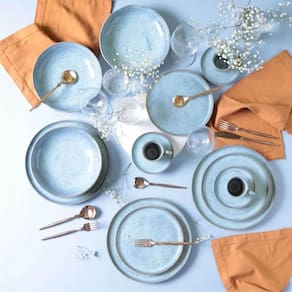O aparelho de jantar 30 peças Bio Breeze da Porto Brasil é uma escolha sofisticada e contemporânea para compor mesas que aliam elegância, frescor e personalidade. O conjunto é produzido em cerâmica stoneware (grés), material de alta resistência e durabilidade. A coleção Bio Breeze se inspira nas formas orgânicas e na natureza, com um delicado tom azul que remete ao frescor da brisa marítima. Ideal para quem busca renovar a mesa posta com originalidade e elegância, valorizando tanto refeições cotidianas quanto ocasiões especiais.