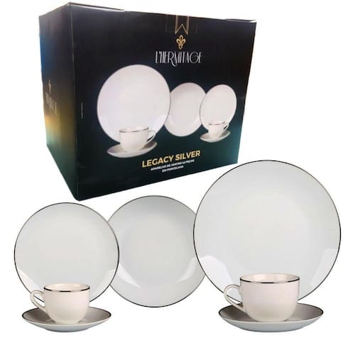 O Aparelho de Jantar 42 Peças Em Porcelana Filetes Prateados da marca l'hermitage é perfeito para deixar a sua mesa ainda mais elegante e sofisticada. Feito em porcelana de alta qualidade, esse conjunto é resistente e durável, garantindo que você e sua família possam desfrutar dele por muitos anos.