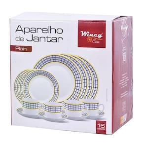 Vda01006 - aparelho jantar plain grid vd 16 peças Dê significante destaque a sua mesa e torne qualquer refeição em um momento prazeroso e especial. O conjunto de jantar plain grid, além da qualidade conta com detalhes, através do seu design levar à mesa a elegância e sofisticação que combinam com você.Medidas: 28 cmMaterial: vidro