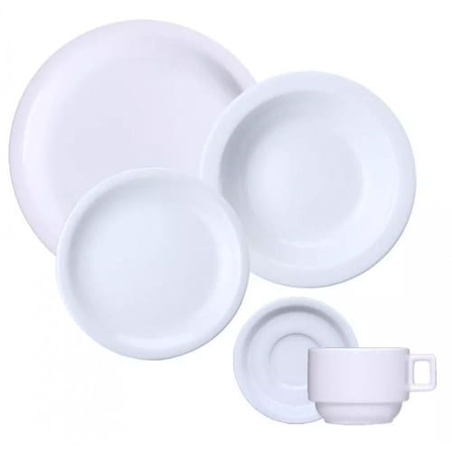 Para uma mesa especial e cheia de estilo, o aparelho de jantar Germer Iguaçu em porcelana será o seu melhor aliado. Composto por peças com excelente brancura e brilho, ele é fabricado em porcelana tradicional e exclusiva Germer, que além dessas características, também proporciona alta resistência mecânica e porosidade próxima de zero, que evita a proliferação de fungos e bactérias. Um aparelho de jantar com design classico e atemporal, perfeito para o dia a dia.