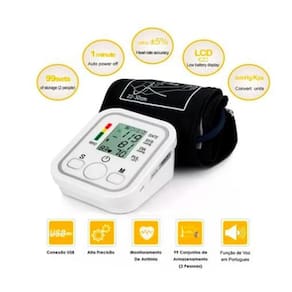 Aparelho arterial automático - medição confiável e rápida Mantenha as medições arterial e pulsação sempre em dia com este incrível equipamento avançado que realiza leituras da pressão sistólica, diastólica e de pulso, além de detectar arritmia cardíaca e possui indicador de hipertensão. Sua tecnologia inteligente permite o controle da inflação ao nível ideal, proporcionando uma medição mais confortável e precisa. Funções técnicas: - indicador de arritmia. - indicador gráfico de nível de hipertensão. - indicador de batimentos cardíacos. - detecta batimentos cardíacos irregulares - operação simples basta um toque para ligar e medir automaticamente. - desligamento automático: 1 minuto. - recurso de hora e data para até 2 usuários. - mede pressão sanguínea sistólica e diastólica e pulsação frequência cardíaca - memória total de 198 resultados com hora e data. - tela digital lcd: alta resolução e baixo consumo de energia - possui função de voz, fala o resultado obtido em português - possui 2 unidades de medida: kpa e mmhg. - precisão clinicamente comprovada de acordo com os protocolos do inmetro - certificados: ce, iso e rohs - braçadeira com circunferência de 22 cm a 32 cm extra grande , fácil de usar e ajustável. atende aos pacientes obesos . - método de medição: oscilométrico; - medição no braço - alimentação: 4 pilhas aaa ou por entrada micro usb - totalmente automático: controle de inflação e liberação rápida - faixa de medição: - pressão sanguínea: 40mmhg - 280mmhg 5.3kpa - 37.3kpa / - ritmo cardíaco: 40x/min - 195x/min - precisão da medição: - pressão: +-0.4kpa +-3mmhg / - ritmo cardíaco: - 5% - peso: 330g sem pilhas Itens inclusos 01 medidor . 01 estojo para armazenamento 01 braçadeira extra grande 22 cm x 32 cm 01 manual de instruções Produto possui registro e certificação nº 2020202070176 Produto nº 20200328 - gb9706.1-2007 Fda registration certificate fiscal year 2020 nº 10072274 Certificate of conformity fda nº 10064773 Certification europe nº iso13485:2016 Lot: wo2005001 ====================== Dúvidas frequentes - o medidor é à pilha ou fonte Você pode escolher se prefere usar com pilha, ou fonte usb. - o produto é resistente Trabalhamos apenas com produtos com material de altíssima qualidade, durabilidade e procedência. Marca: Não Informado Ean: 7905246683266