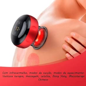 Aparelho De Ventosaterapia Elétrica Sucção Aquecida Fisioterapia Massagem Máquina de ventosaterapia elétrica, recarregável, com infravermelho e controle de níveis.