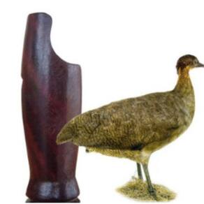 parente da ema e do avestruz. Vive até 20 anos. Prefere florestas virgens e limpas, voa com muita dificuldade e somente quando acuado. O macuco macho faz o ninho, choca os ovos e cria os filhotes. E solitário e muito perseguido por ter carne saborosa. Seu pio e uma nota prolongada e melodiosa repetida poucas vezes principalmente ao anoitecer. Encontrado na serra do mar de pernambuco ate o paraguai e a argentina. 11cm de altura 9cm de circunferência 29 gramas