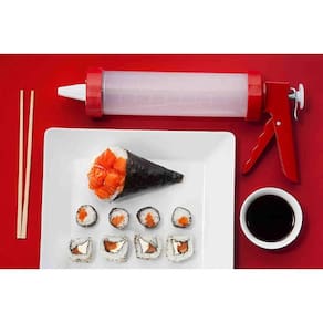 Aplicador De Cream Cheese Vermelho Para Sushi Anodilar Aplicador De Cream Cheese Vermelho Para Sushi Anodilar Descrição: Aplicador de Cream Cheese é um produto ideal para preparar sushi e temaki. Um ótimo produto para quem ama fazer comida japonesa. É feito de plástico super-resistente e possui êmbolo de inox para suportar a consistência do cream cheese. Mais produtividade e segurança na cozinha oriental. Contém: 1 Aplicador de Cream Cheese Importante: Material: Plástico Cor predominante: Vermelho - Ideal para o preparo de sushi e temaki; - Produto desmontável facilitando armazenagem e limpeza; - Êmbolo de inox para suportar a consistência do cream cheese; - Tupo transparente para visualizar o conteúdo; - Gatilho da máquina em alumínio; - Ideal para quem ama gastronomia; - Prático e fácil de Utilizar. - Medida externa: 6,0 cm - Comprimento interno útil: 22,0 cm - Volume útil interno: 500 cm cúbico Ficha técnica - Cor: Inox